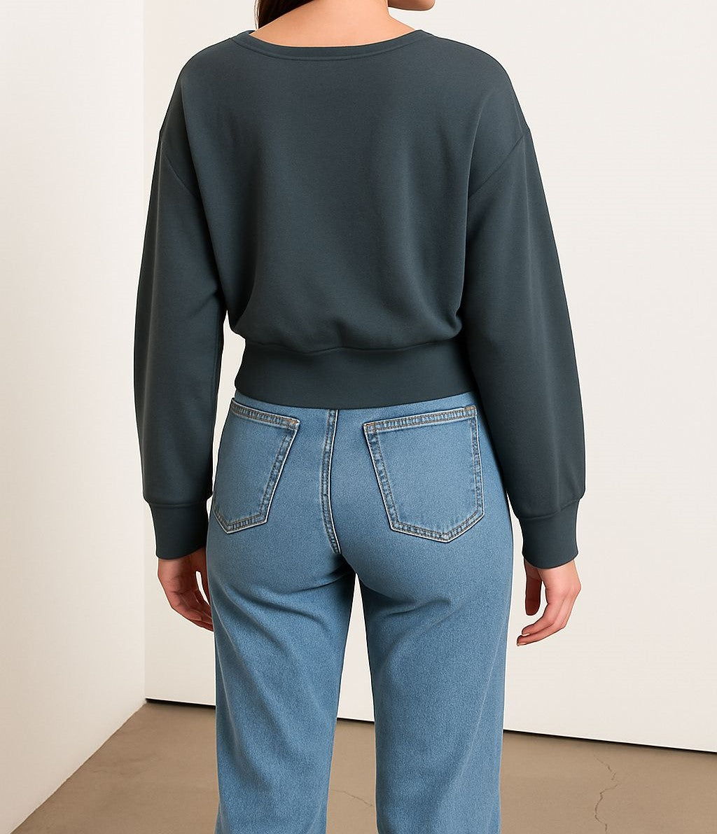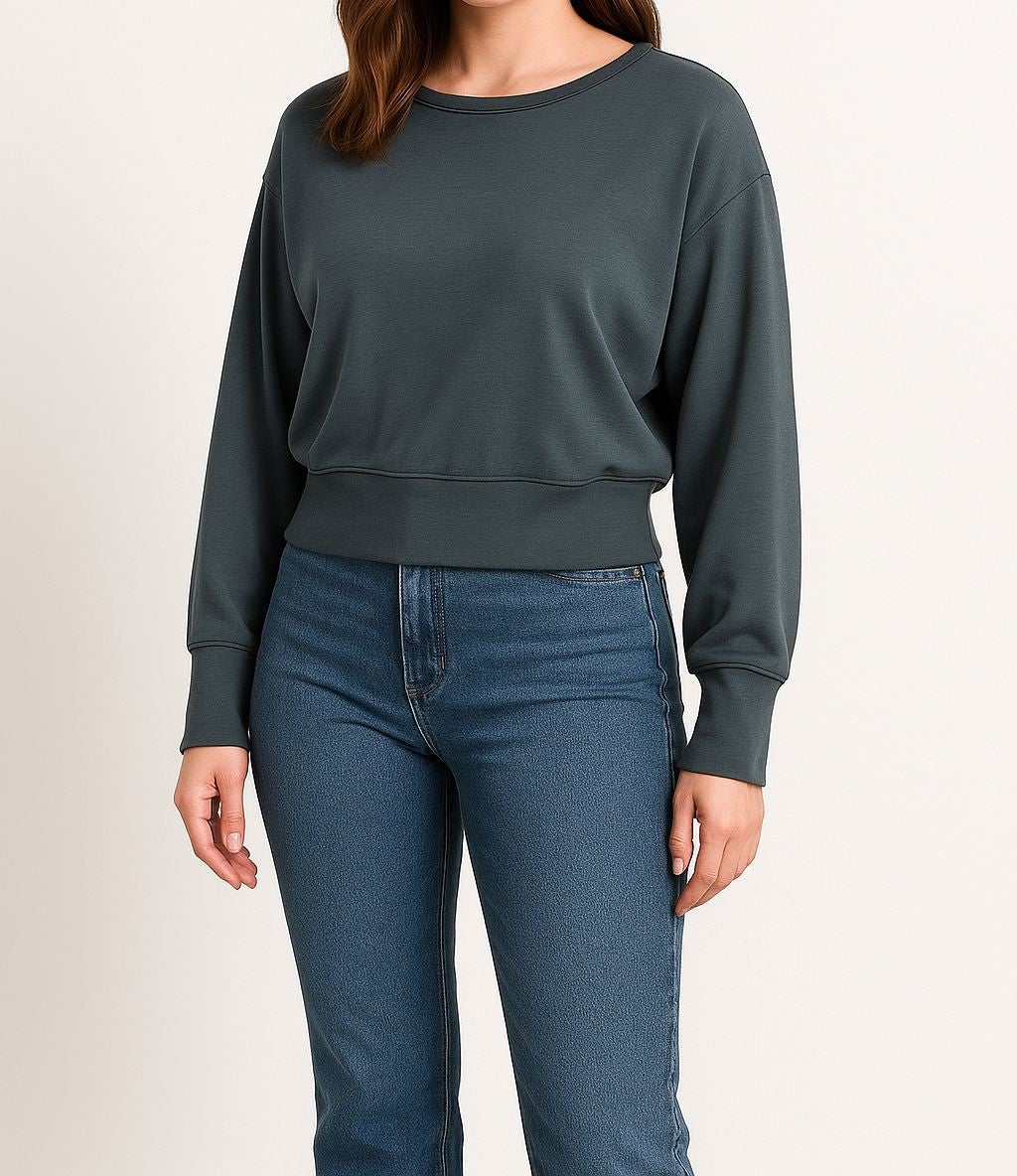 - Kayık yaka tasarımı ile modern ve şık bir görünüm sunar.